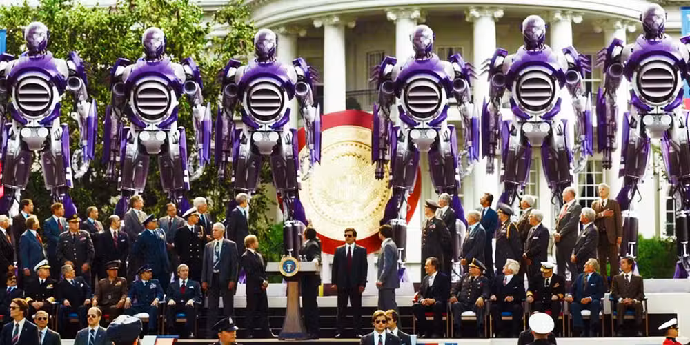 Se pueden ver grandes patas robóticas justo detrás de Cyclops en medio de las ruinas en llamas de lo que parece ser la Escuela Xavier. Como resultado, lo más probable es que se trate de Sentinels, los clásicos robots asesinos de mutantes creados por Bolivar Trask, como se ve en los cómics originales.