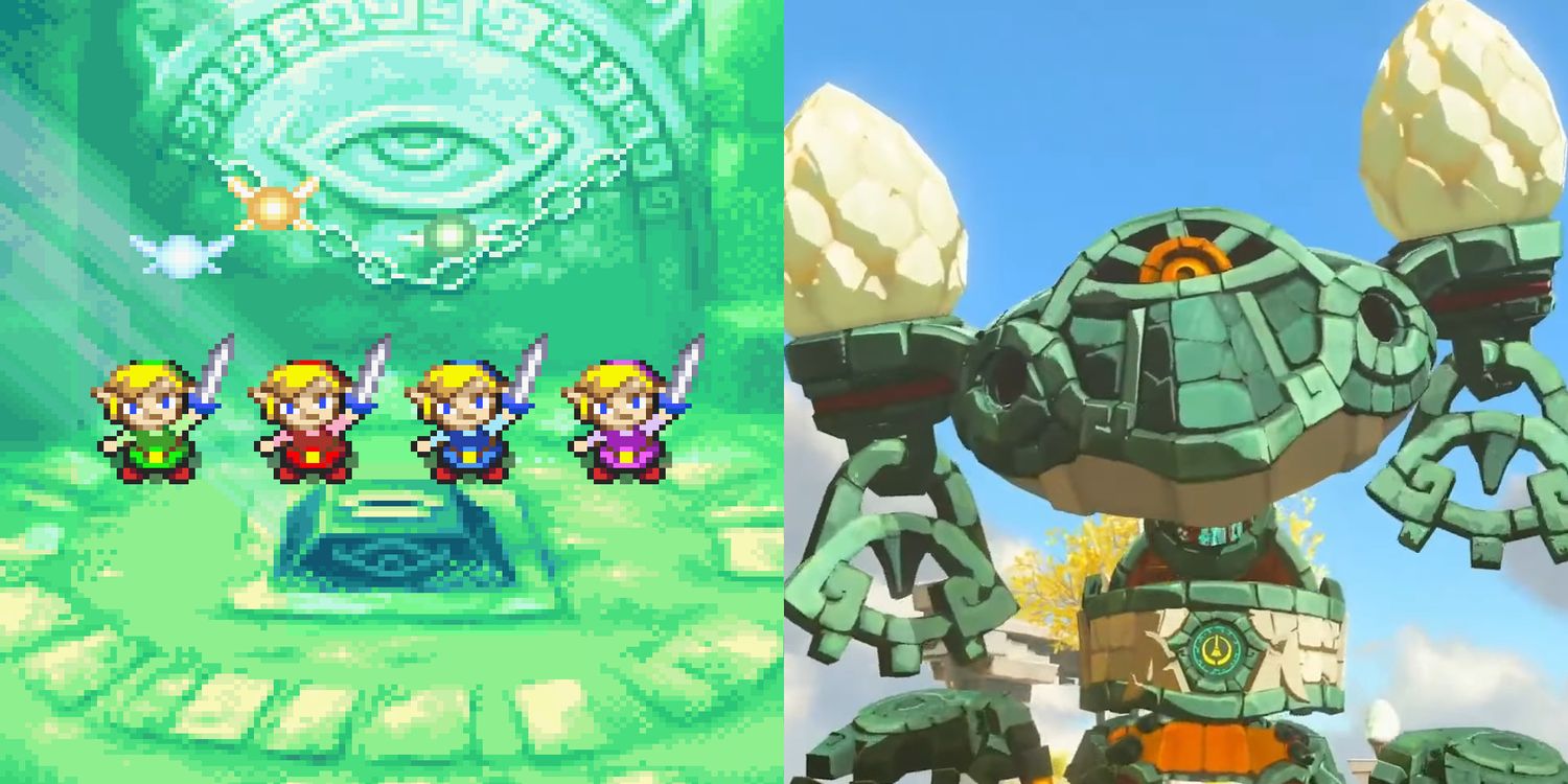Los ojos de los Constructores en TOTK tienen un parecido sorprendente con uno tallado en una pared detrás del pedestal donde se encuentra la Espada Cuádruple La Leyenda de Zelda: Cuatro Espadas. Lanzado junto al puerto GBA de Un vínculo al pasado, cuatro espadas fue el zelda La primera incursión de la serie en el modo multijugador. Tanto los ojos de los Constructores como el del cuatro espadas tallados tienen una forma perfectamente almendrada, con pupilas prominentes y alas en las esquinas que giran en ángulo recto para formar diamantes. Esto sugiere que los Zonai pueden haber sido los creadores originales de la Espada Cuádruple, que luego fue utilizada por un gran héroe para sellar los ataques recurrentes. zelda antagonista Vati.