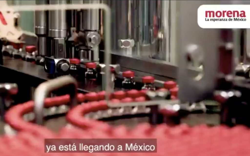 El spot dice que ya está llegando la vacuna contra el Covid-19, y “con ella la esperanza de un mejor futuro se levanta”. Tras pedir se sigan las medidas de prevención se señala: “Tiempo cedido por Morena para el cuidado de la salud”.