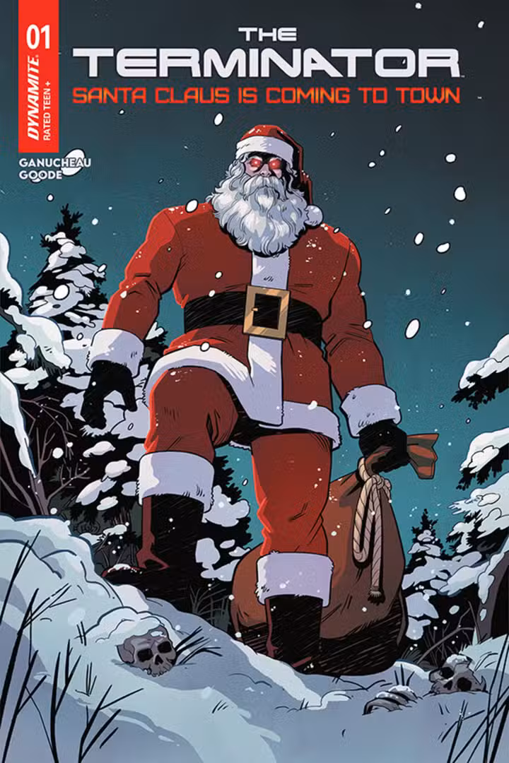 Terminator: Santa Claus viene a la ciudad #1 está escrito por Paulina Ganucheau, con arte de Kendall Goode. El cuento de invierno encontrará miembros de la resistencia humana entreteniéndose con historias adornadas de un T800 Santa.