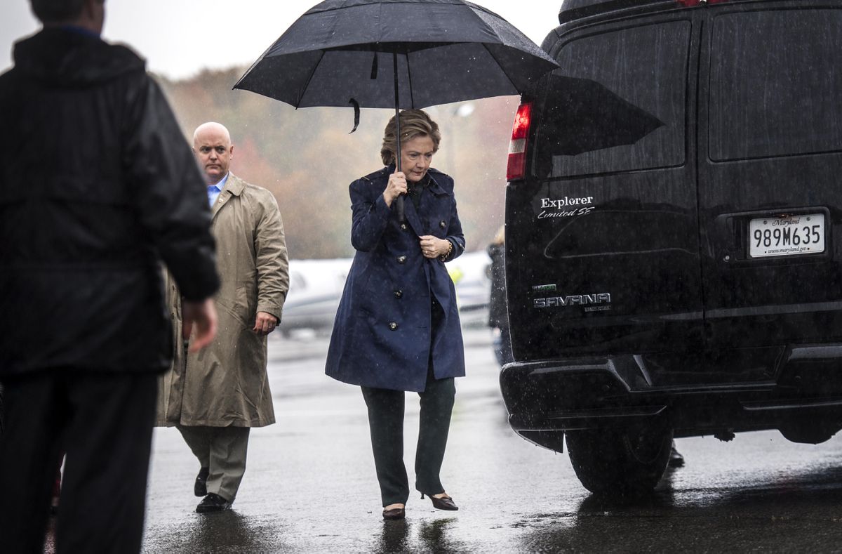Tras aterrizar en la base aérea Andrews, la hicieron subir con prisas a un coche blindado donde siguió leyendo informes,