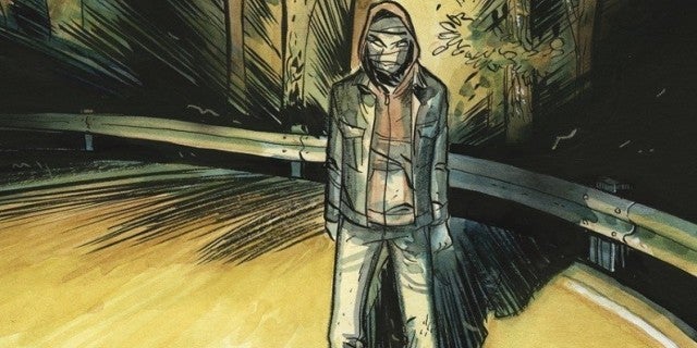 El drama llena las primeras páginas de Manor Black # 1 mientras una furgoneta se desliza por el camino, sus habitantes claramente en apuros y huyendo. Se habla de misteriosos perseguidores y rituales terribles en la apertura rápida, todo esto se muestra en colores apagados para transmitir la oscuridad y la urgencia de la situación. La segunda página sola que muestra al asaltante encapuchado y vendado iluminado por los faros es una de las mejores escenas que el problema tiene para ofrecer, y hay varias para elegir. Tanto para un cómic como para una historia de terror, es una apertura que te enganchará.