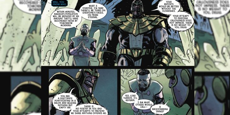 En uno de los mayores desnudos verbales en la historia reciente de Marvel Comics, Thanos simplemente derribó a Druig algunas clavijas al insultar al héroe de MCU con un discurso tan brutal que el Eterno casi se echó a llorar. En eternos # 11, Drug, que tiene un papel más villano en los cómics que su contraparte de MCU, intenta llamar a Thanos pero termina en el lado equivocado de uno de los mayores insultos que Mad Titan haya ofrecido.