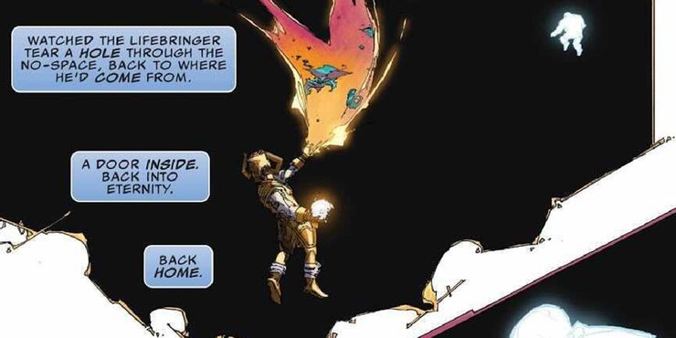Como Lifebringer, Galactus estaba en su momento más heroico, ya que sus poderes restauraron planetas que previamente había erradicado de la vida. Sin embargo, cuando los Ultimates se embarcaron en una misión extremadamente peligrosa y quedaron casi atrapados en el vacío de la oscuridad, Galactus se vio obligado a salvarlos, mientras creaba un portal que conduciría al impactante regreso de Thanos después de morir a manos del Doctor Doom. Sin Galactus ‘ intervención con los Ultimates, Thanos probablemente todavía estaría atrapado fuera de la vida en la nada. Desafortunadamente, fue liberado por completo accidente y desde entonces ha seguido causando estragos en el Universo Marvel.