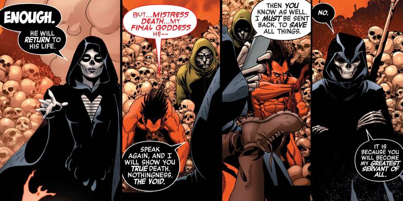 El doctor Doom y Thanos han matado en un nivel universal, pero hay una gran diferencia entre ellos, Cuando el doctor Doom mata a alguien, tienden a permanecer muertos. Los mayores tributos de Thanos a la muerte llegaron Guantelete infinito y el período previo a Guerras secretaspero todos estos asesinatos fueron revertidos más tarde. En Guantelete infinitoNebula restablece el universo a antes del genocidio de Thanos, mientras que Guerras secretas Ve a Franklin y Reed Richards recrean todas las versiones de la Tierra que destruyó. Incluso el Cancerverse se recuperó después de la visita de Thanos.