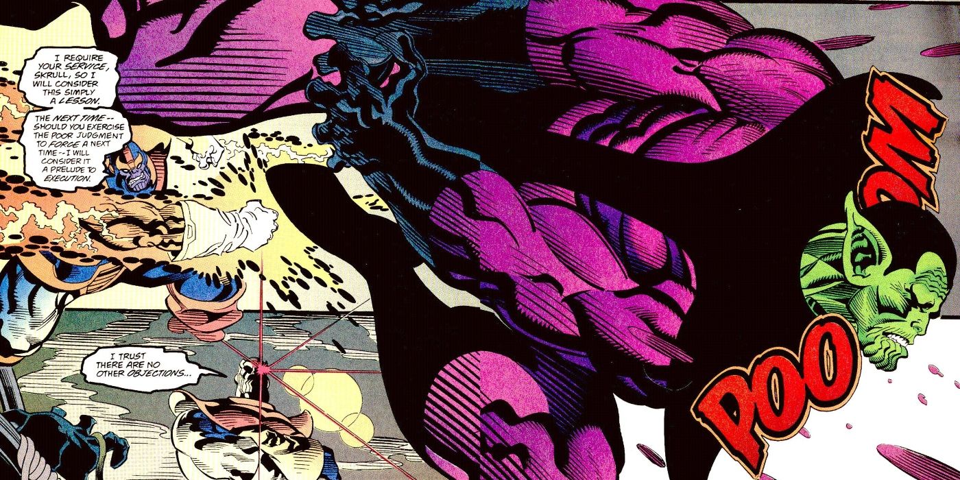 - En un encuentro con Thanos, el primer Super-Skrull llamado Kl’rt fue rápidamente derrotado y fácilmente dominado por el Titán Loco.