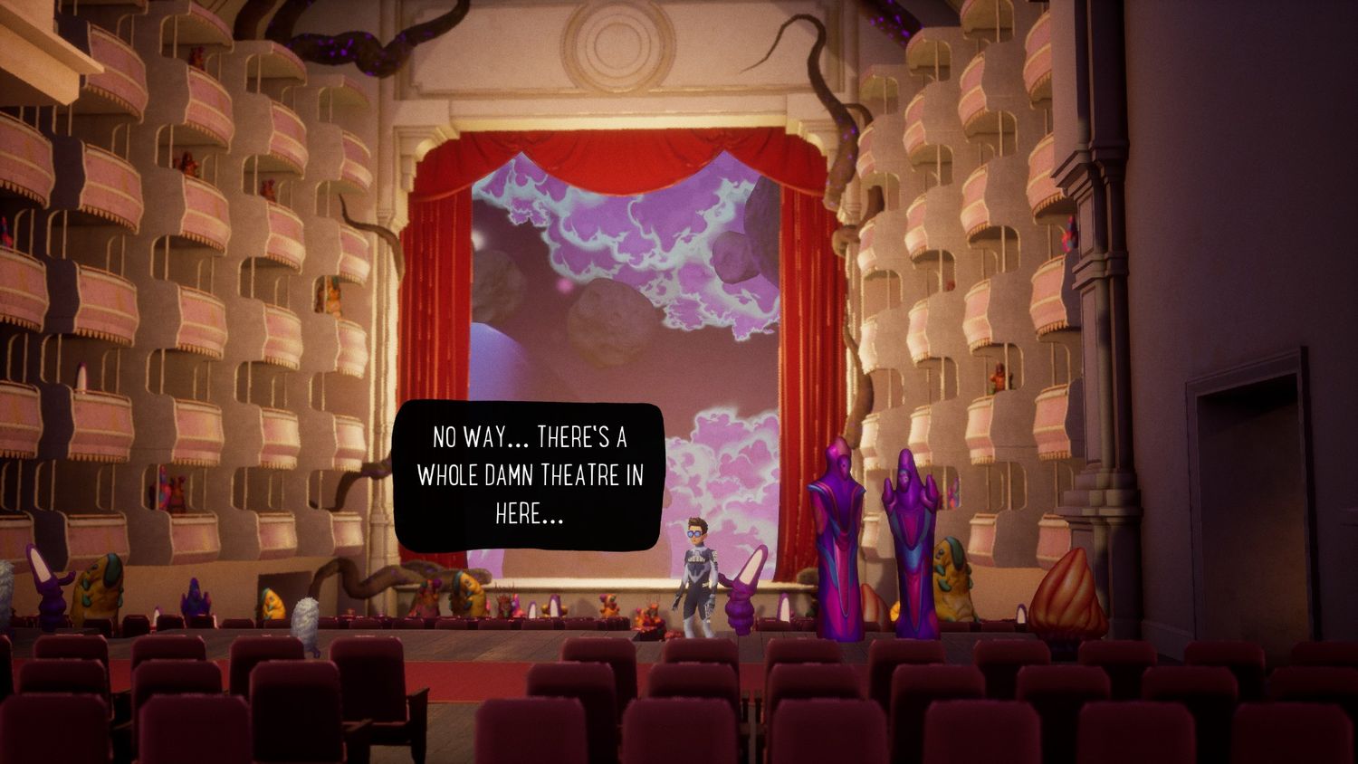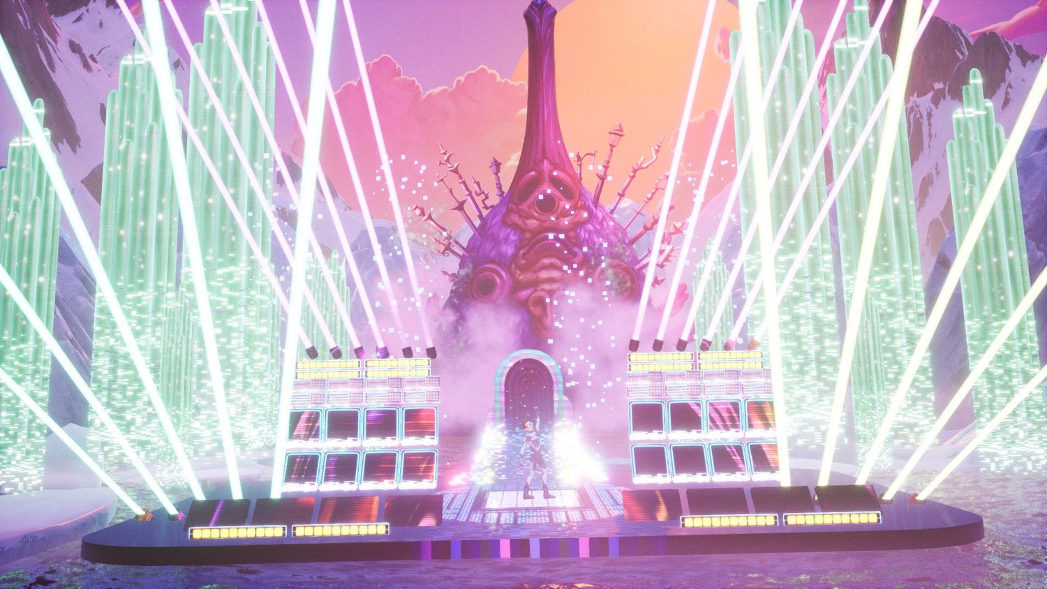 “/> Esa escena del acantilado le pide al jugador que presione un botón que efectivamente triturará las escamas distorsionadas en cualquier cosa. El escape ingenioso desea conjurar en un momento dado. En los diferentes planetas del juego, la guitarra estimula los fondos para que exploten en color y las criaturas alienígenas se muevan en éxtasis luminiscente mientras Francis deambula. Jugará valientemente estos solos hasta el infinito en un abrir y cerrar de ojos, pero es pura tontería mecánica. Incluso el componente ocasional del juego de ritmo jugable, donde los símbolos de “tecla musical” aparecen en el aire o están integrados en la cara de un extraterrestre, es desdeñosamente fácil, breve y mínimamente interactivo.