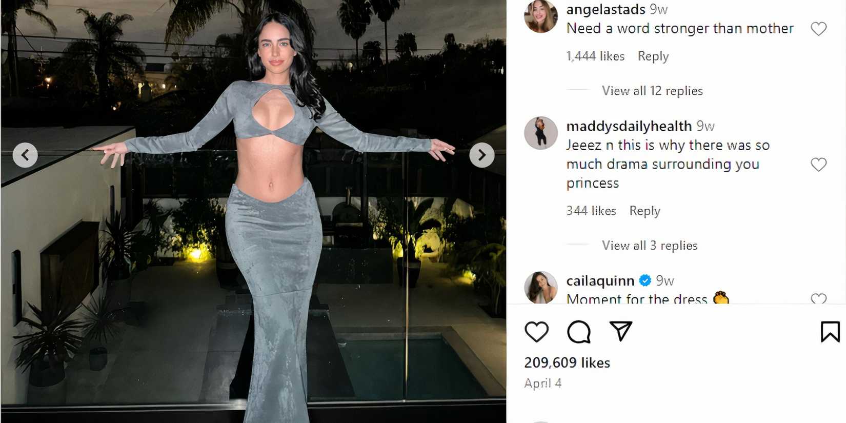 En abril, María publicó una foto de ella misma usando un conjunto de falda gris de dos piezas hecho a medida que realmente muestra su vientre plano y sus curvas. La publicación tiene 209,6 mil me gusta y el título dice: “Cher inspiró este look y @yung.reaper le dio vida..” Los fanáticos acudieron a la sección de comentarios de la publicación para registrar su aprobación por la mirada ardiente de María. Un fan hizo referencia al conflicto de María con las otras mujeres de El soltero temporada 28, escribiendo, “Jeeez, es por eso que hubo tanto drama a tu alrededor, princesa.“.