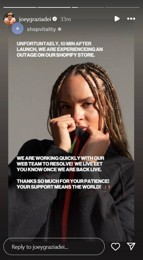joey, Kelsey y Vitalidadla compañía que lanzó su nueva línea de ropa, The Joey And Kelsey Edit, recurrió a Instagram para admitir que tuvieron algunos problemas al intentar lanzar la tienda en línea. Según Vitalidad, hubo una interrupción apenas 10 minutos después del lanzamiento. Anunciaron que estaban “trabajando rapido” para resolver el problema tecnológico. Vitality finalmente proporcionó una actualización diciendo que la tienda finalmente estaba activa y admitió que la interrupción fue causada por “alto trafico” al sitio web.