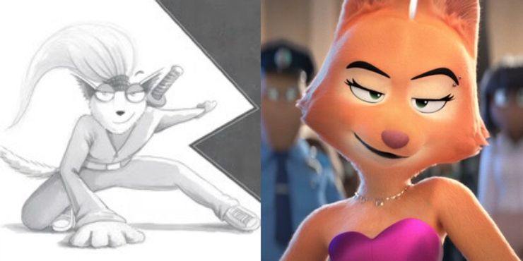 En una breve escena de los libros, se presenta a una jueza de la Corte Suprema llamada Diane, pero su personaje es una gallina. Casi parece que los escritores de la película fusionaron a Diane y Ellen en un solo personaje. La decisión de darle al zorro una posición de poder puede haberse tomado para dar un giro genial a la trama más adelante cuando se revela la identidad de Crimson Paw.