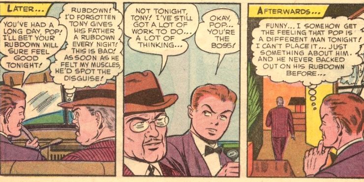 Es una lástima que Tony fuera dejado de lado ya que los temas de espionaje se habían incorporado al personaje. Tiene historias en las que huyó de los comunistas e interactuó con el Sino-Superman. Dado que Alfred también tiene antecedentes de espionaje, emparejarlos probablemente habría dado lugar a grandes historias.