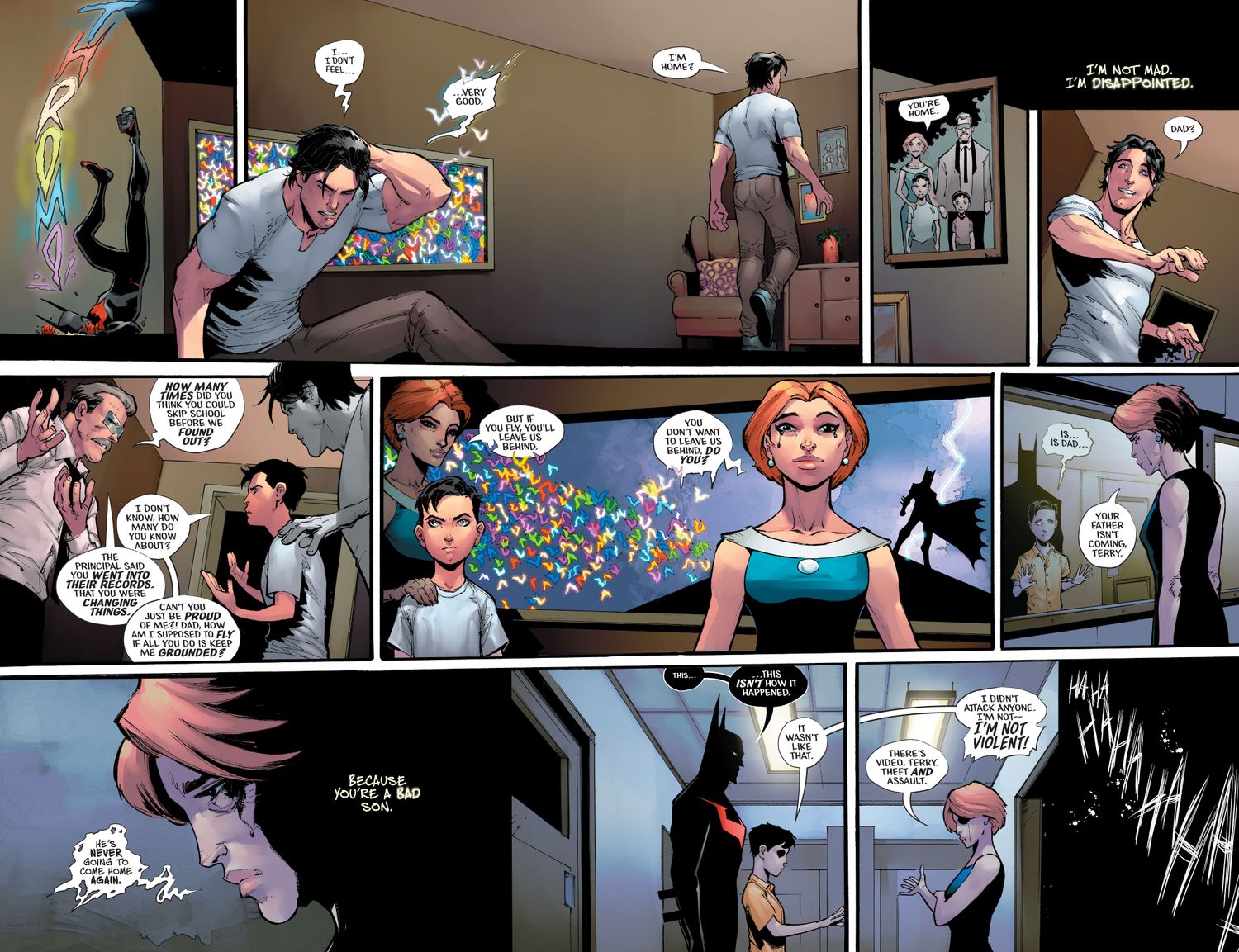 “/> Manteniéndose fiel a la esencia de Batman en cualquier forma, Batman Beneath ataca a Terry donde realmente le duele: su mente. En sus primeras escenas de acción, Batman Beneath realmente infunde miedo en el futuro Batman, llegando a Terry de una manera que ningún villano le ha hecho daño antes. Lo que está en juego personalmente en este nuevo desafío aumenta dramáticamente cuando Batman Beneath saca a la superficie las inseguridades de Terry sobre su familia. Incluso cuando Terry reconoce desde el principio que se trata de una secuencia de ensueño, o que sus recuerdos parecen distorsionados de cómo sucedieron realmente, está claro que las duras palabras de su madre y la interacción con su hermano lo afectan.