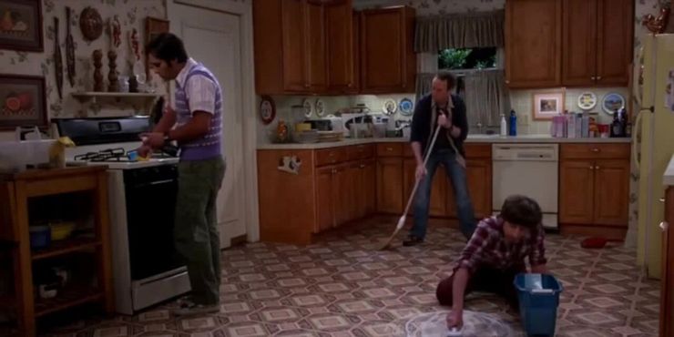 Después de ver a Stuart y Howard en la cocina en ropa interior y calcetines, Bernadette se dio cuenta de que era la madre de hombres adultos. Tenía un día ajetreado de recados y se molestó cuando llegó a casa y los encontró a ellos y a Raj sentados en el sofá jugando. Decidió que era hora de que contribuyeran y les dio una lista de cosas para limpiar. Mientras los chicos limpiaban, empezaron a cantar “It’s the Hard Knock Life” de Annie. Estaban haciendo sus vidas más difíciles de lo necesario y no le dieron suficiente crédito a Bernadette.