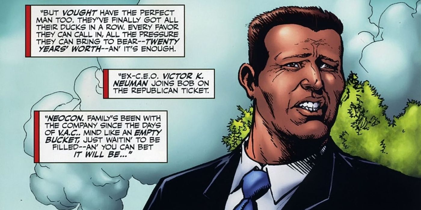 “/> Victor Neuman (o Vic the Veep, como se le conoce más comúnmente) es el vicepresidente de los Estados Unidos durante la mayor parte de Los chicos serie. Mientras fue asesinado brutalmente (y humillantemente) por Homelander en Los chicos #65, Vic resultó bastante útil para Vought-American hasta ese momento. Víctor era un títere ingenuo que representaba los intereses de Vought en Washington. Permitió que quizás la organización más malvada de cualquier mundo ficticio gobernara efectivamente la nación, algo que se simplificó aún más cuando Vic finalmente se convirtió en presidente, lo que hizo que su espantosa desaparición fuera aún más merecida.