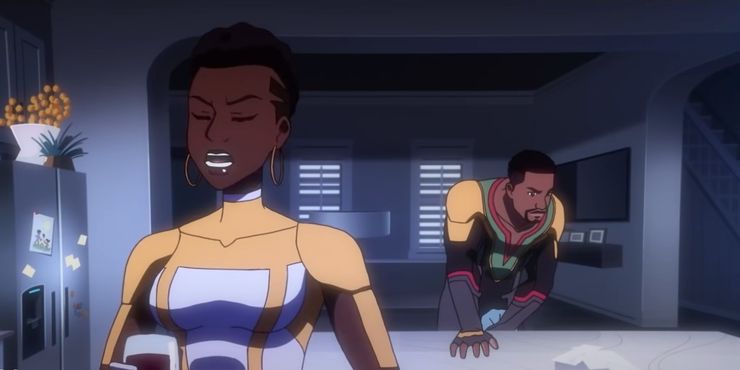 Señor y Señora Smith pero con superpoderes: “Nubian vs Nubian” de Aisha Tyler revela lo que sucede cuando una superpareja de Vought sale terriblemente mal. Nubian Prince y Nubia se conocieron cuando eran jóvenes superhéroes, pero ocho años después y con una hija a la que cuidar, luchar contra los villanos es (casi) lo único que disfrutan juntos. Poniendo más énfasis en la acción que cualquier otro episodio en Los chicos: diabólicos, “Nubian vs Nubian” es una carta de amor al anime presentada en un estilo de superhéroe occidental. Animado por D’art Shtajio (el estudio detrás del video musical “Snowchild” de The Weeknd), los puñetazos en pleno vuelo, las posturas de superhéroe y los relámpagos le deben más que un poco a Dragon Ball Z, pero el sabor japonés se equilibra con opciones estilísticas que preferirías encontrar en los dibujos animados de superhéroes occidentales. Probablemente se deba al director del episodio, Matthew Bordenave, quien ha estado involucrado en numerosos proyectos de DC y Marvel durante su carrera de animación.
