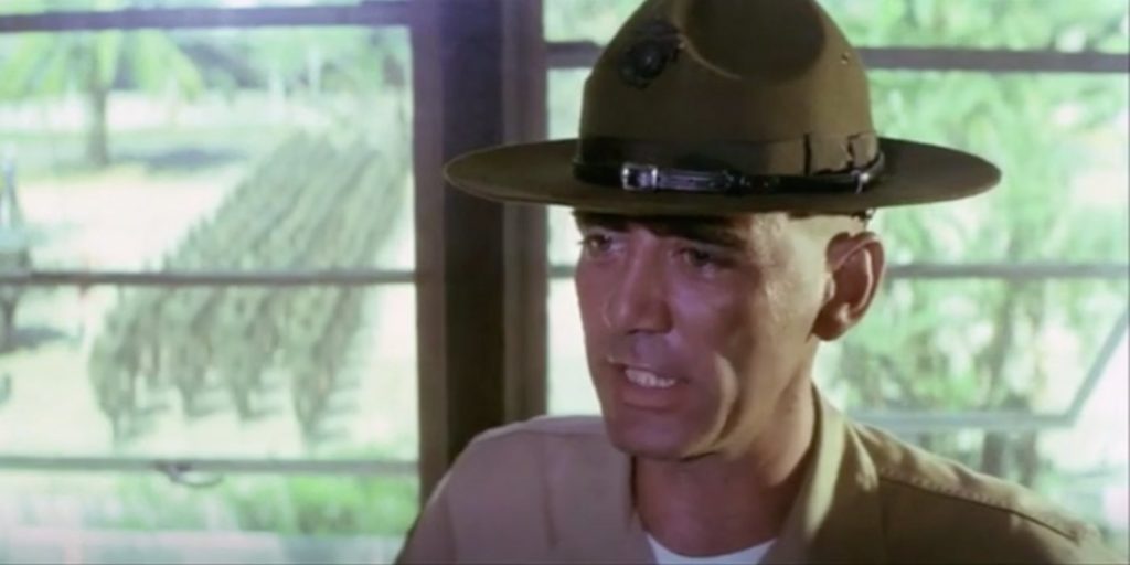 R. Lee Ermey es mejor recordado por su feroz actuación como sargento de artillería Hartman en Stanley Kubrick's (El brillante) drama contra la guerra La chaqueta metálica. Esta película de 1987 se divide en dos partes, la primera después de la capacitación de un grupo de reclutas de campo de entrenamiento. Ermey fue contratado originalmente como asesor técnico y Kubrick creía que el actor era demasiado amable para interpretar a Hartman; cambió de opinión después de que Ermey se grabara realizando una brutal diatriba verbal contra algunos reclutas, basándose en sus propias experiencias en los marines. La actuación de Ermey es inolvidable y fue tan bueno que Kubrick, que era infame por exigir innumerables tomas de artistas, generalmente solo necesitaba unas pocas tomas de él por escena.