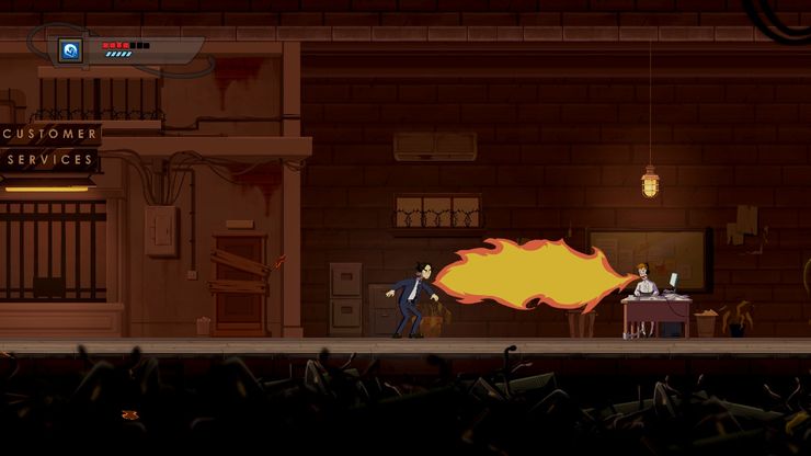 el hombre de la empresa es un emocionante juego de plataformas sin escasez de acción y desafíos. Desde enemigos que disparan hielo a Jim hasta representantes de servicio al cliente que escupen fuego, hay una gran variedad de adversarios para evitar o derrotar antes de pasar al siguiente nivel. el hombre de la empresa es un juego de plataformas inmensamente divertido que recuerda a los juegos de la vieja escuela, pero con una mirada moderna a la corrupción corporativa.