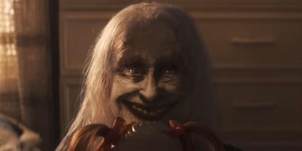 La muñeca poseída Annabelle ha sido un terror recurrente en la vida de Judy en la franquicia de conjuros. Judy incluso tenía una visión de ello sentado en una mecedora al principio de Últimos ritosmostrando que todavía puede perseguirla desde el interior de su estuche de vidrio. Sin embargo, la muñeca siniestra aparece más tarde en la casa de los Smurls, transformándose en una versión gigante de sí misma y atacando a Judy.