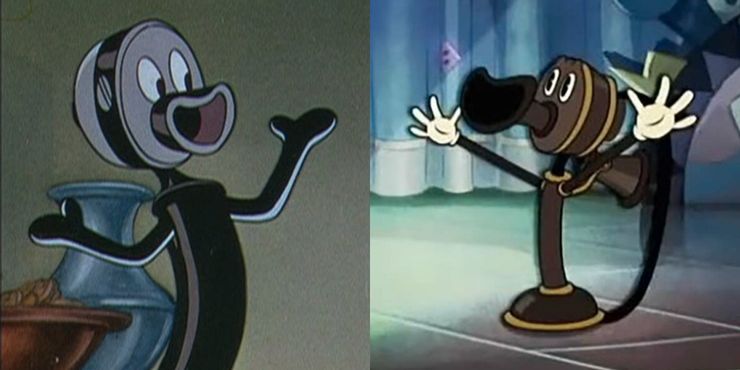 La caricatura original de Disney presenta a Mickey haciendo un viaje a través del espejo hacia un mundo lleno de objetos personificados, incluido un teléfono que salta la cuerda. Si bien el residente de Inkwell Isle no es tan atractivo como su inspiración de Disney, el parecido es asombroso.