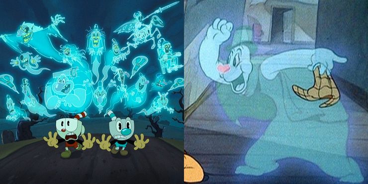 Las expresiones faciales, las narices grandes, los bombines y las carcajadas diabólicas sirven como devoluciones de llamada a los Fantasmas Solitarios que se ven en la caricatura de Mickey Mouse del mismo nombre. Si bien no hay una instancia individual, hay varias probabilidades y extremos que los fanáticos de los dibujos animados encontrarán familiares.