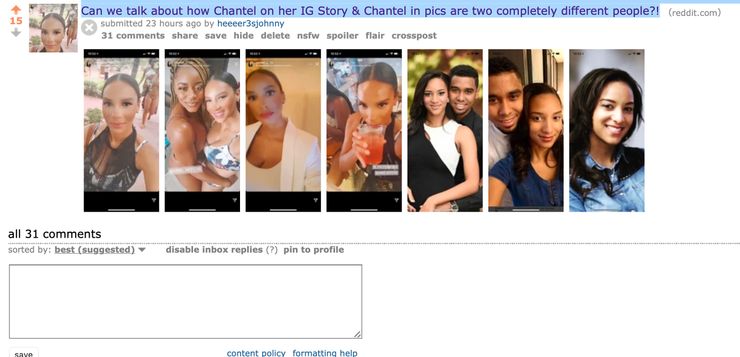 Un espectador recurrió a Reddit para señalar la extraña edición de la historia de Instagram de Chantel. “¿Podemos hablar de cómo Chantel en su IG Story y Chantel en fotos son dos personas completamente diferentes?“el usuario subtituló la publicación. El fan compartió fotos de Chantel de su historia de Instagram que mostraban su piel extrañamente borrosa en comparación con la apariencia de la estrella de reality shows”.¿Nariz? No la conozco, “dice uno de los comentarios principales”.¿Lo que le ocurrió a ella? Ella era tan bonita hace años (última foto). ¿Esas cejas? Aparte de los horribles filtros, ¿hizo su trabajo? Sus ojos son tan diferentes“escribió un comentarista.