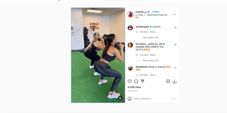 Chantel recurrió a su cuenta de Instagram para compartir un video de ejercicios con Winter. El canto de la familia las estrellas demostraron un conjunto de ejercicios en el gimnasio que mostró cómo se mantienen en forma. El video de progreso mostró cuán dramáticamente ha adelgazado Winter en combinación con su cirugía y su plan de comidas. Mientras tanto, Chantel parecía tan delgada como siempre. Las hermanas vieron a Karen exaltándolas en los comentarios. “MAMÁ DIJO QUE TE NOQUEARON!!!!!“, escribió en respuesta a la elección de la canción en el video. Muchos comentaristas también notaron el dulce vínculo entre Chantel y Winter que ahora ve a las hermanas animándose mutuamente”.necesito una hermana como tu”, le escribió un fan a Chantel.