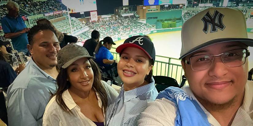 Karen disfrutó del tiempo con su familia en un juego de los Bravos de Atlanta