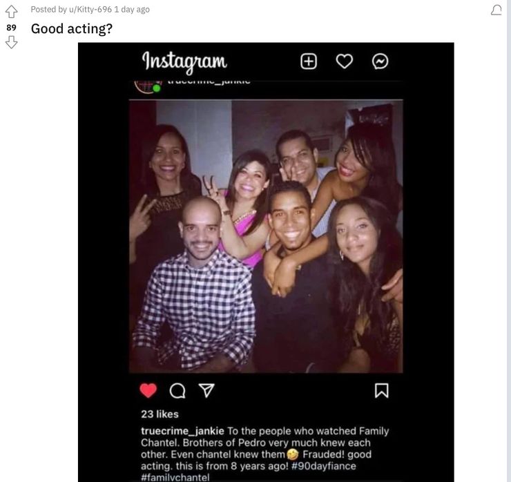 En Reddit, U / Kitty-696 compartió una foto de Pedro que también se ha publicado en otro lugar en línea. Se tomó con Chantel y sus medio hermanos hace muchos años, y parece mostrar que los descubrimientos emocionales de Pedro en La familia Chantel La temporada 3 era en realidad falsa, ya que él ya conocía a sus hermanos e incluso había salido con ellos. Muchos espectadores regresaron al programa debido a la aparente realidad de la historia de Pedro, lo que hizo que el descubrimiento de su posible engaño resultara impactante para los fanáticos. Los redditors informaron que se sintieron defraudados ya que se involucraron en el viaje de Pedro en la serie. Algunos ahora se sienten tontos por creer lo que estaban viendo en la pantalla.