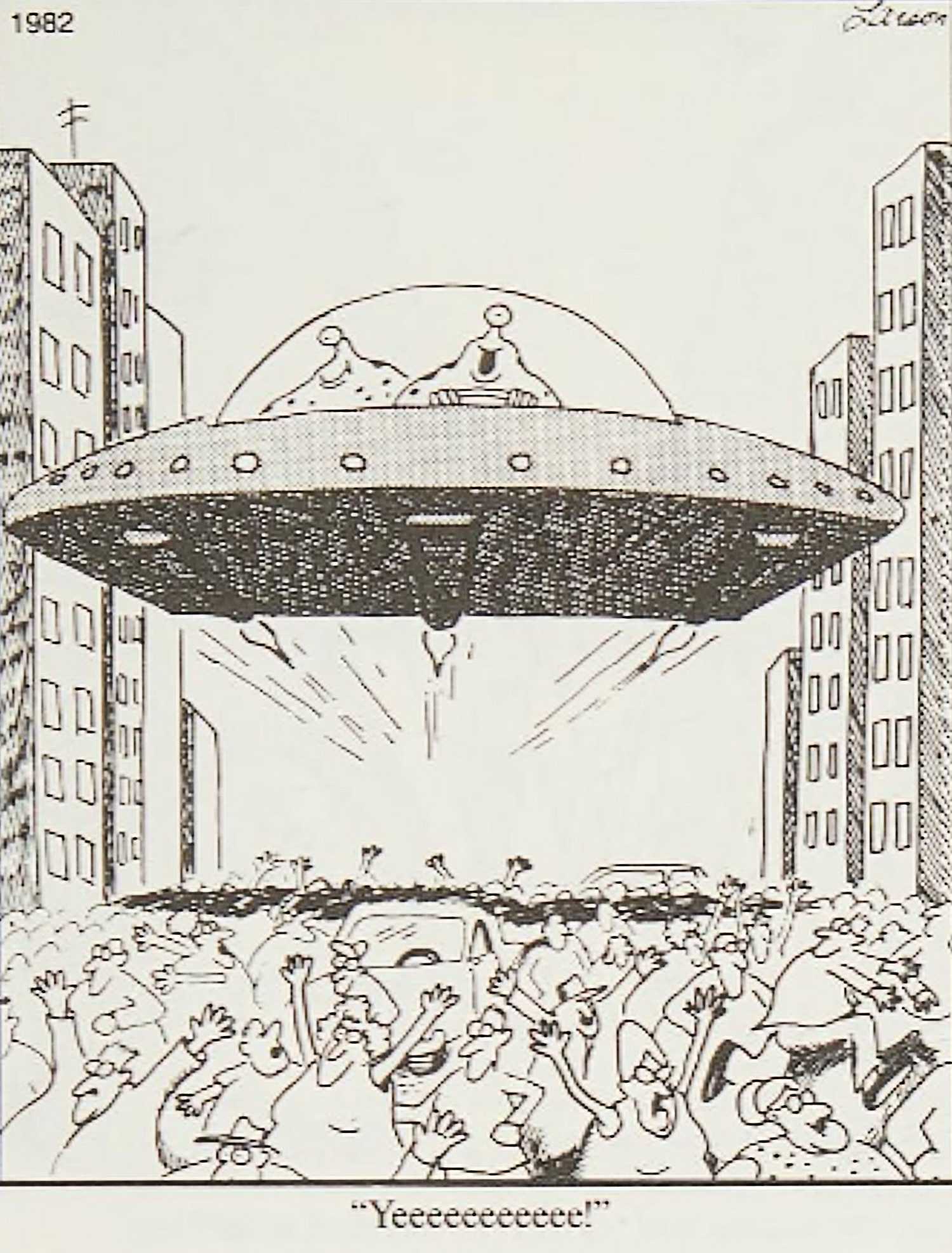Como relató Gary Larson, al principio se mostró tímido a la hora de pedirle a su editor que corrigiera el título de la caricatura extraterrestre: