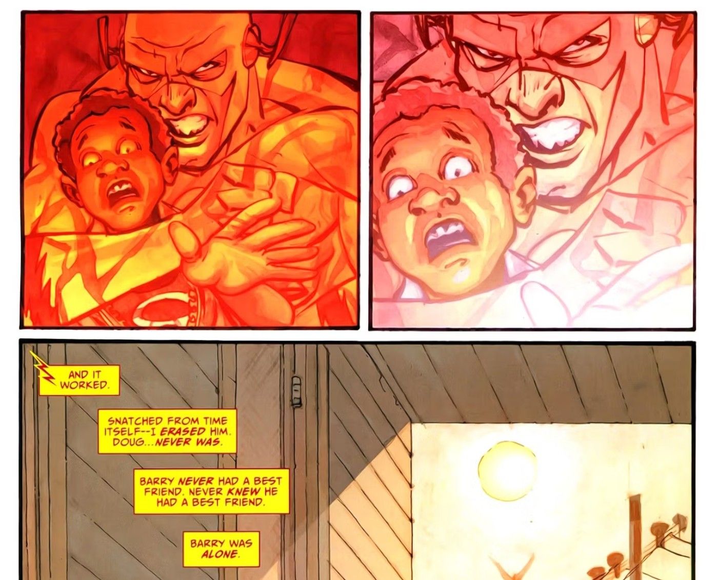 “/> Barry tuvo una vida un poco extraña mientras crecía, debido a la muerte de su madre y el encarcelamiento de su padre, Barry no tuvo mucho apoyo ni muchos amigos. Pero una persona que siempre fue su amigo y un punto brillante en su vida fue Doug. Doug era un chico que realmente se llevaba bien con Barry y compartían intereses similares, el mayor de los cuales eran los cómics. Pero debido al odio absurdo de Reverse-Flash hacia Barry, Eobard retrocedió en el tiempo y hizo que Doug desapareciera, enteramente para que Barry pasara su infancia sin amigos. Este pequeño acto fue visto en Flash inverso: mi venganza por Scott Kolins, Joel Gómez, Brian Buccellato y Sal Cipriano.