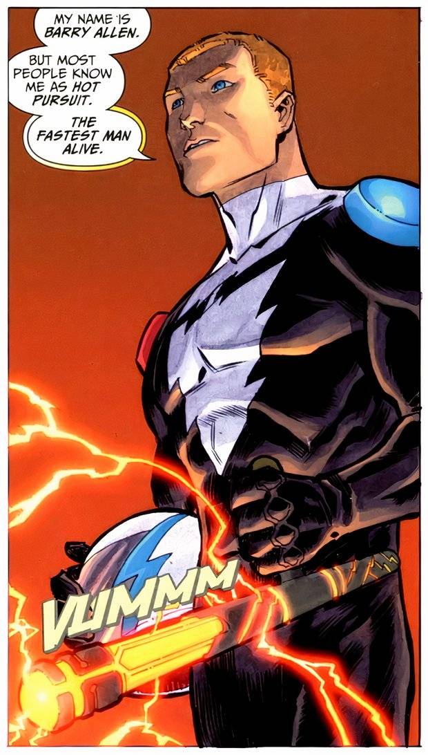 Otro Flash alternativo aparece en el DCU, esta vez con un aspecto completamente diferente que deja atrás cualquier vestigio de los colores icónicos de Flash. Justo antes Punto de inflamabilidad, Este Barry Allen de un universo paralelo llega para advertirle a Barry, de Tierra Uno, de los problemas que se avecinan. Lo mejor de todo es que ni siquiera es Flash. Se hace llamar Hot Pursuit y también es el hombre más rápido del mundo, pero no se pone de pie.