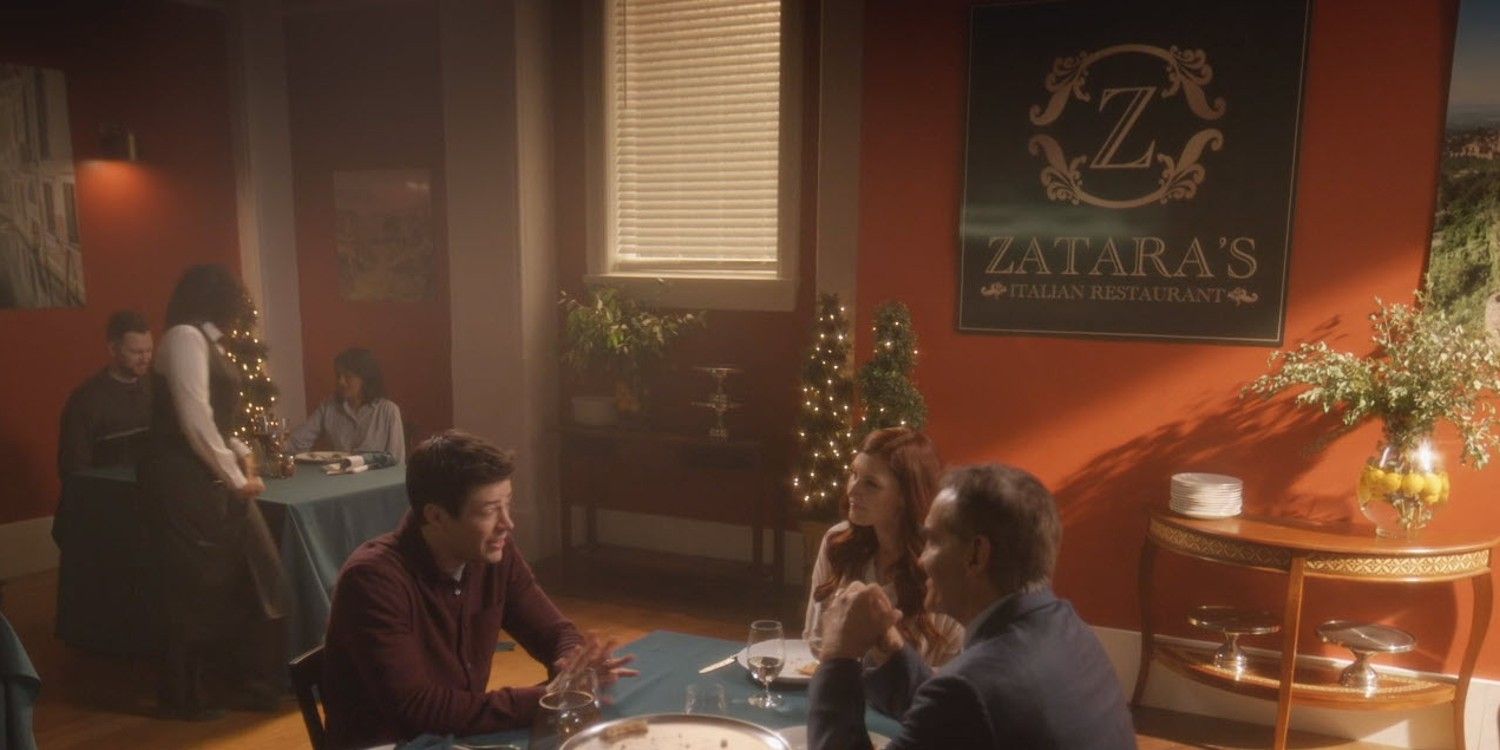 Por una feliz coincidencia, Barry es atacado en la calle por Reverse-Flash justo cuando sus padres pasaban. Nora y Henry Allen llevan a Barry al hospital y luego lo invitan a almorzar después de que se queja de que su nivel de azúcar en la sangre es demasiado bajo. Lo llevan a Zatara’s, un restaurante italiano que se dice que tiene la mejor pizza de Central City.