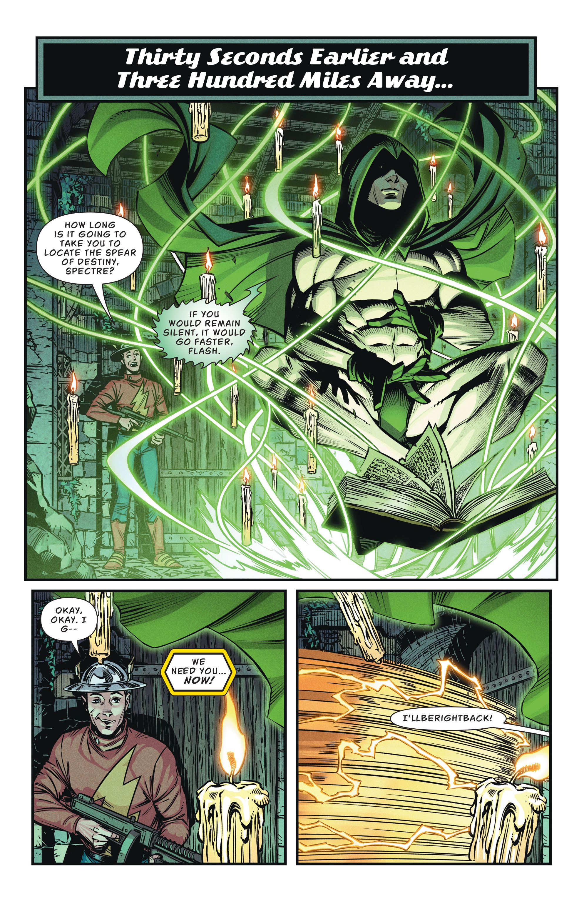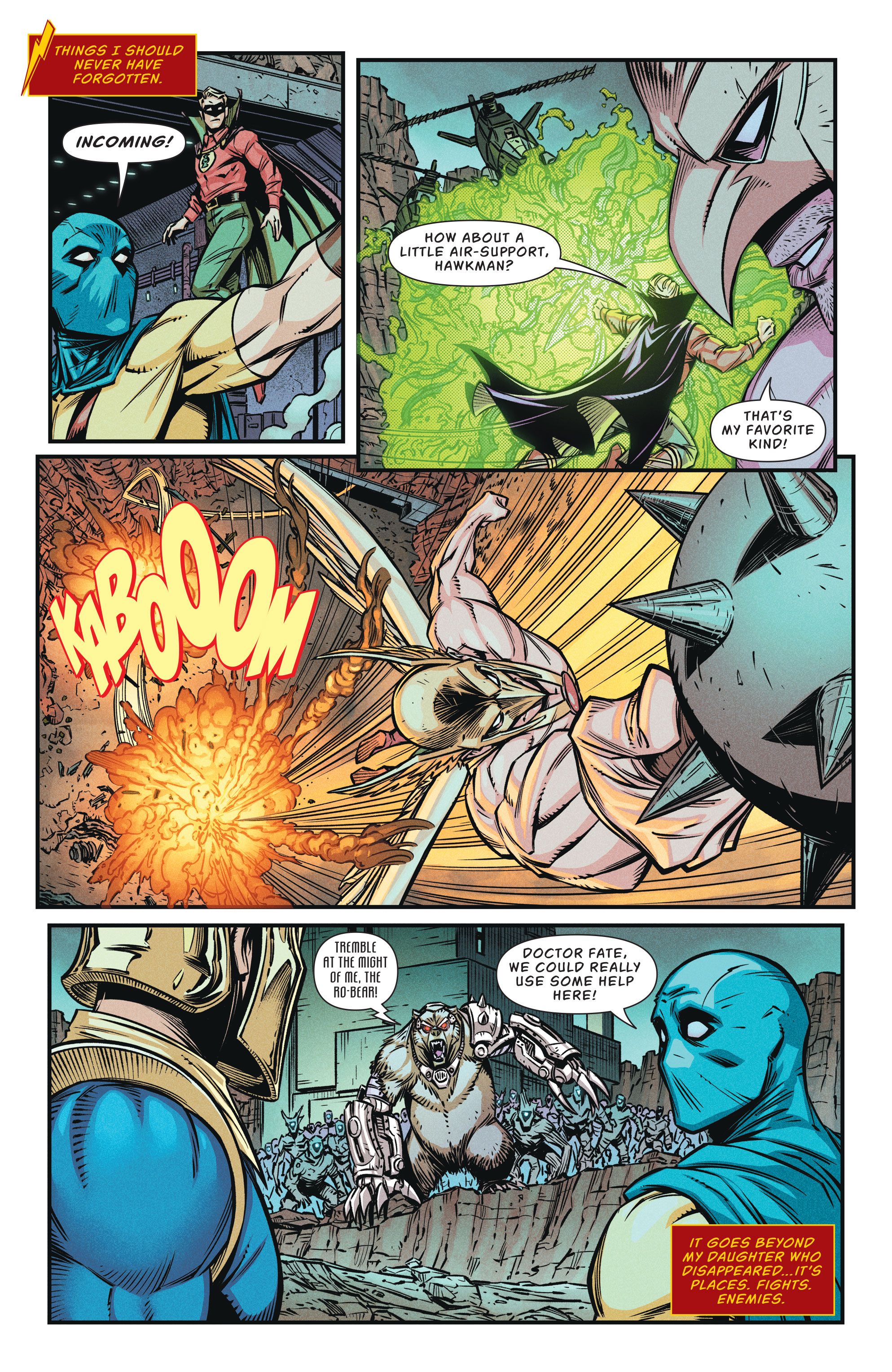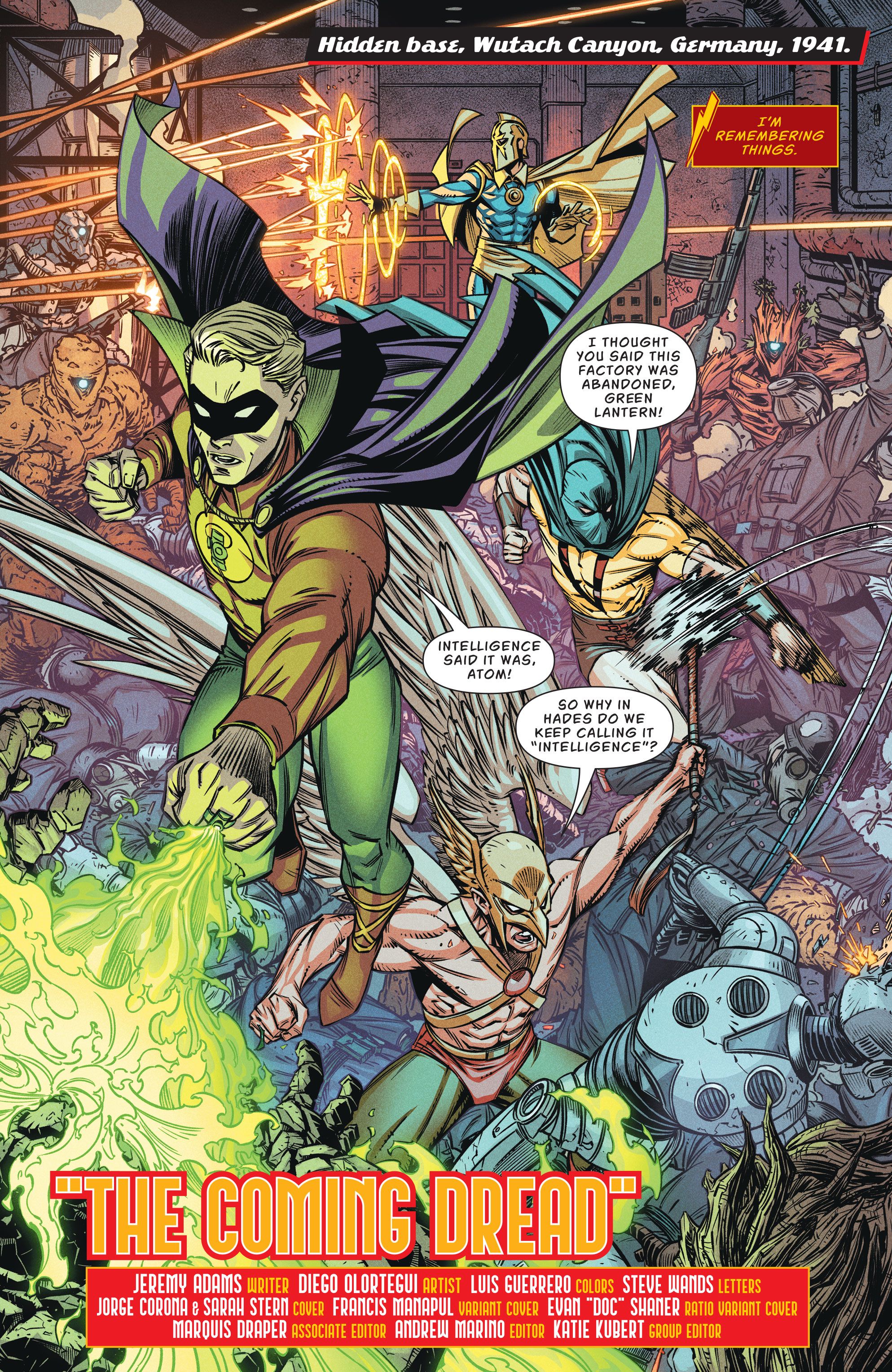 En un adelanto de Jay Garrick: El flash #2 Por Jeremy Adams y Diego Olortegui, la Sociedad de la Justicia de América se encuentra en una base oculta en Alemania luchando contra una legión de criaturas aterradoras. El equipo se ve abrumado por el ejército y le pide al Doctor Fate que pida ayuda a Flash.