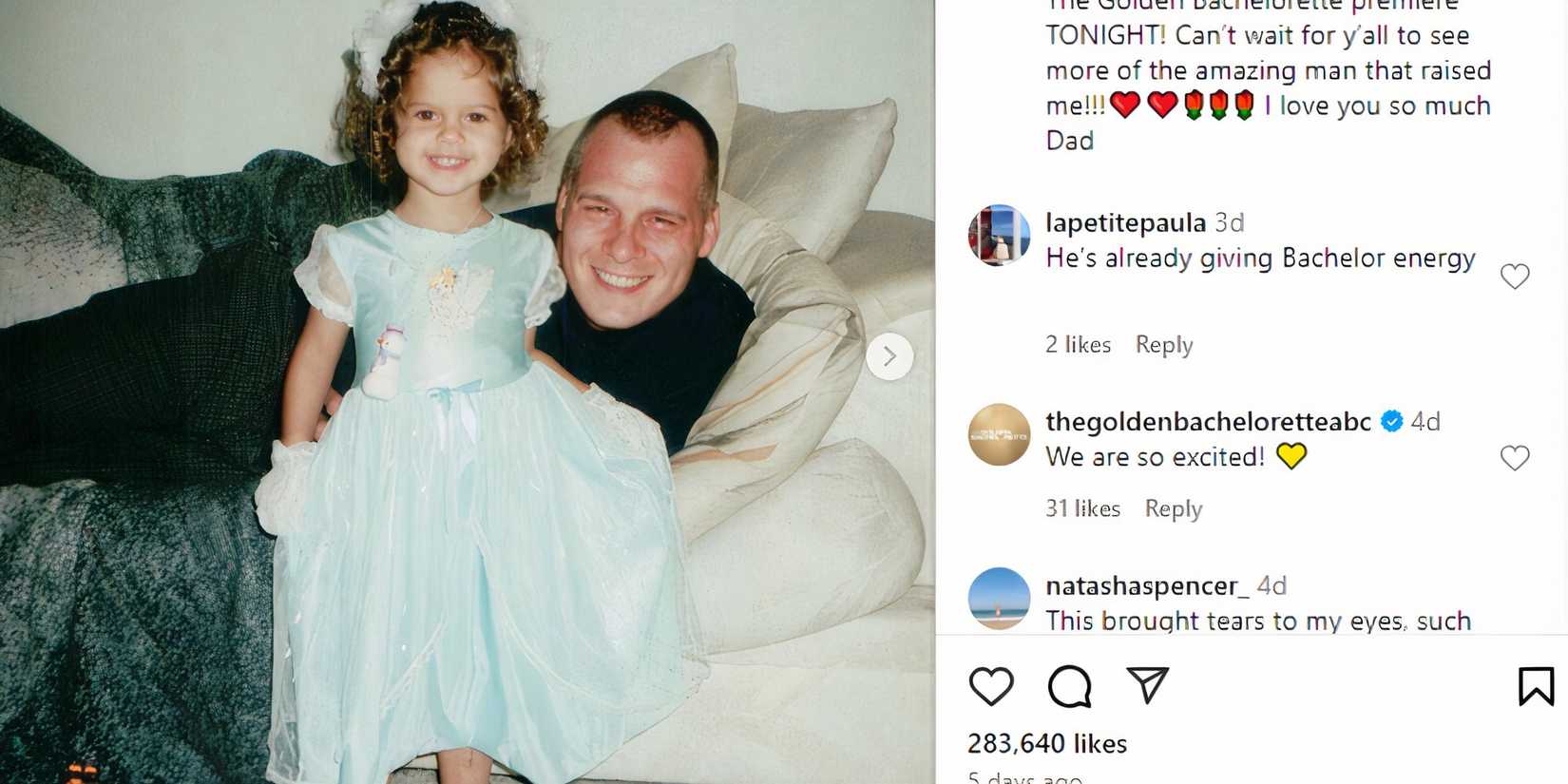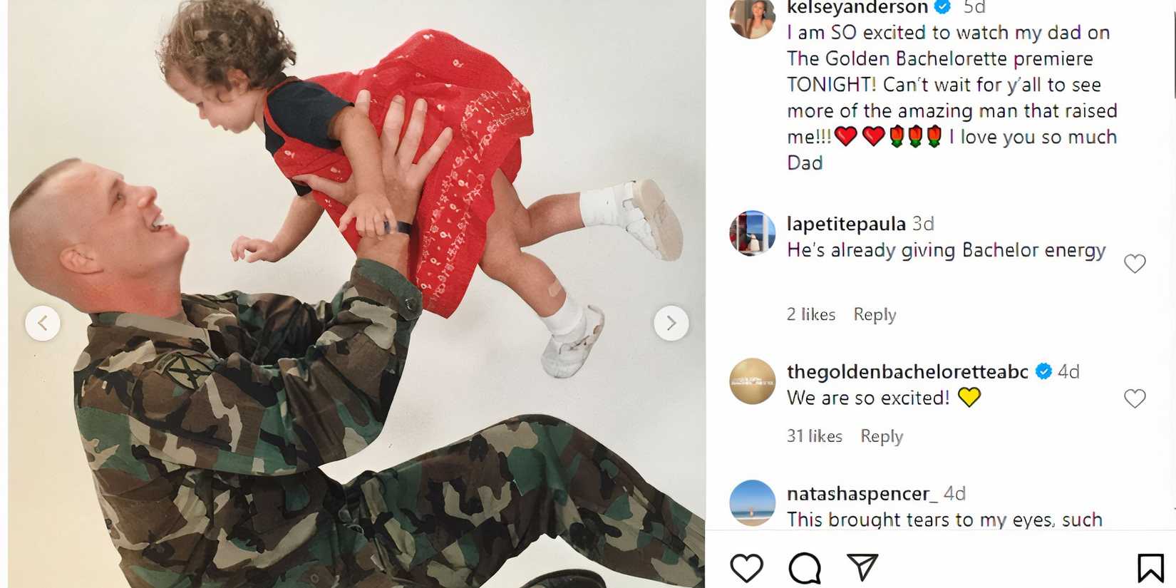 Durante una cita con Joey en uno de los primeros episodios de el soltero En la temporada 28, Kelsey reveló que no era cercana a su padre mientras crecía. El veterano retirado del ejército trabajaba mucho en aquel entonces, por lo que no estaba presente con frecuencia. Kelsey entendió que su padre estaba ocupado trabajando duro para mantener a su familia. A juzgar por la fotografía, ambos Mark y Kelsey apreciaron sus momentos juntos.