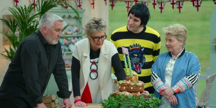 De todos los programas de competencia de reality shows, El gran espectáculo de repostería británica es conocido por su naturaleza tranquila y relajante. Los concursantes no solo están dedicados a la deportividad y el estímulo, sino que los jueces y presentadores marcan el tono de todo el programa. En 2017, después de que el programa se mudara a un canal diferente en su Reino Unido natal, los presentadores de mucho tiempo Sue Perkins y Mel Giedroyc fueron reemplazados por Sandi Toksvig (quien luego fue reemplazado por Matt Lucas) y el comediante / actor Noel Fielding.