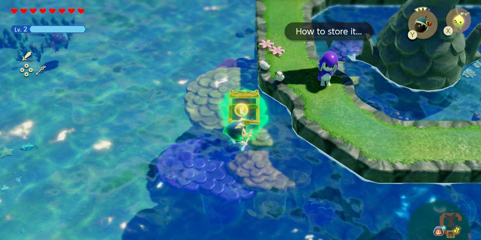 Podrías pensar que necesitas usar uno de los muchos Ecos aprendidos en esta misión, pero la respuesta es un poco más simple. En lugar de usar un Echo, busca y abre cualquier cofre del tesoro que puedas.. Este podría ser uno de los muchos que se encuentran en las aguas que rodean el pueblo de Sea Zora, o puedes viajar un poco más lejos.