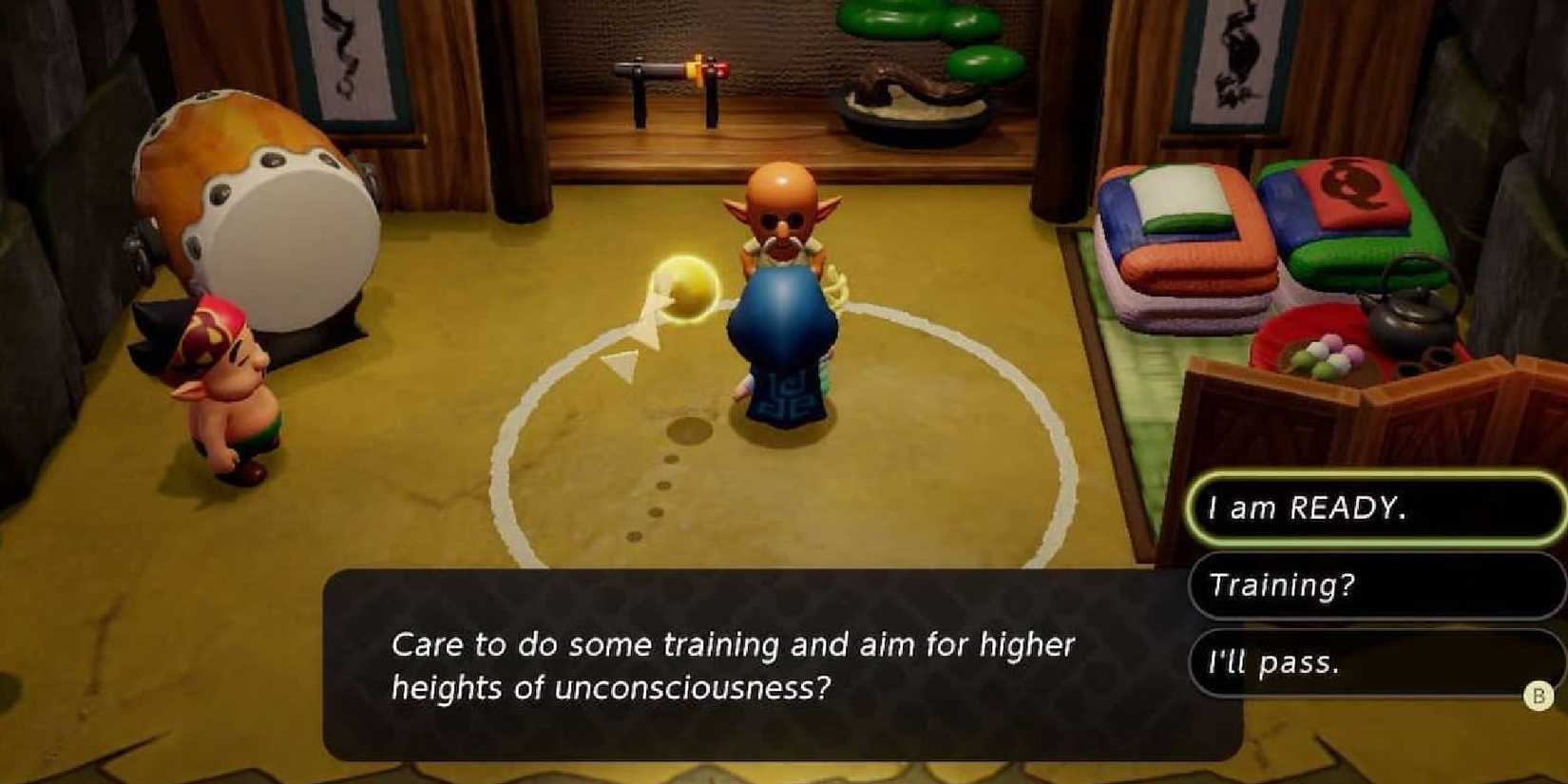 En Slumber Dojo, te enfrentarás a varios enemigos y tendrás un límite de tiempo para derrotarlos. Para obtener la Heirloom Katana, supera seis etapas en total en cualquier dificultad. Usa todo lo que tengas a tu disposición, incluido el objeto interactivo en la habitación y tus Ecos, para derrotar todo lo que te arrojen. Llévale estos dos elementos a Dampé y él creará el Roboblin, un Moblin robótico que ataca a los enemigos con grandes golpes de su espada.