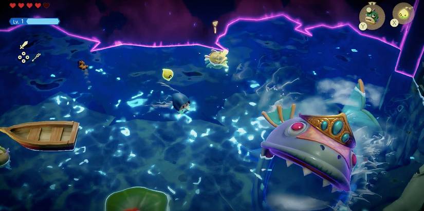 Las tierras de Hyrule están llenas de impostores en Leyenda de Zelda: Ecos de sabiduría. Desafortunadamente para Zelda, este mal alcanza a los amigos. Señor Jabu-Jabu de las Aguas de Jabul. Al viajar a la guarida de Jabu-Jabu, Zelda y Tri descubren rápidamente que el pez gigante ha sido capturado y reemplazado. por un falso Jabu-Jabu. Zelda necesitará derrotar al impostor para rescatar al verdadero Lord Jabu-Jabu.