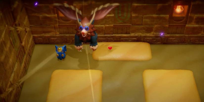 Te encuentras con Mogryph mientras exploras la mazmorra de Gerudo Sanctum, que debes completar para “Una grieta en el desierto de Gerudo” búsqueda de la historia principal. el nuevo “ecos”mecánico de mazmorra en Ecos de sabiduría te ayudará a llegar a Mogryph mientras intentas preservar todos tus corazones. Intenta vencer a los enemigos en esta mazmorra sin lastimarte para estar preparado para enfrentarte a este jefe.