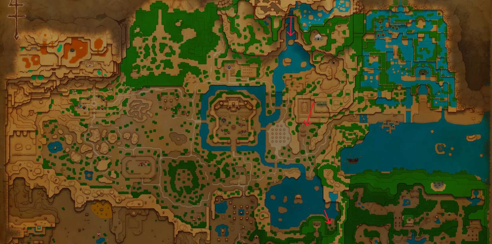 El primer sello en la región de Jabul Waters es bastante sencillo; Lo encontrarás en las puertas norte de Seesyde Village. Para el segundo y tercer lugar de la región, querrás comenzar desde River Zora Villageluego dirígete hacia el sur para el segundo y al noroeste para el tercero. El sello sur está al oeste de Lord Jabu-Jabu’s Den, y el noroeste está en el lado izquierdo del terreno en forma de L sobre el pueblo.