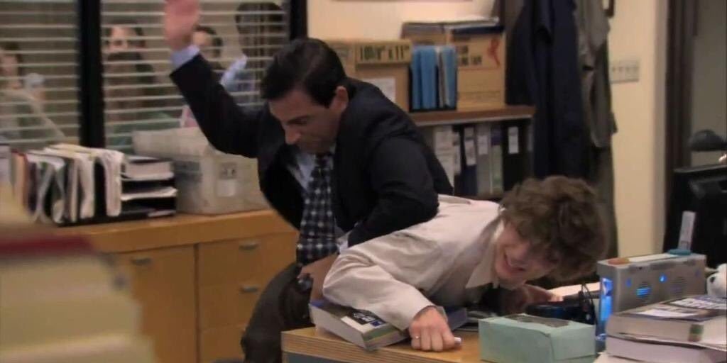 En el primer episodio de La oficinaEn la sexta temporada, Michael se enoja porque no recibe ningún chisme de la oficina en el enfriador de agua, por lo que busca algo de suciedad en sus empleados. Al principio, piensa que simplemente escuchó una jugosa historia sobre Stanley en un club nocturno, pero luego descubre que se topó con Stanley engañando a su esposa. Después de decirle a todos y darse cuenta de que no es asunto suyo y que no debería haberlo hecho, decide difundir un montón de rumores falsos sobre su personal para que lo olviden, pero eso solo lo lleva a más problemas. Es una historia por excelencia de Michael Scott.
