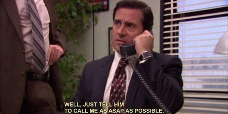 Este es un ejemplo perfecto de Michael diciendo las palabras que escucha, pero sin saber completamente lo que significan. “Lo antes posible” es redundante, pero divertido de decir para los fanáticos que se están burlando del gerente regional favorito de todos.