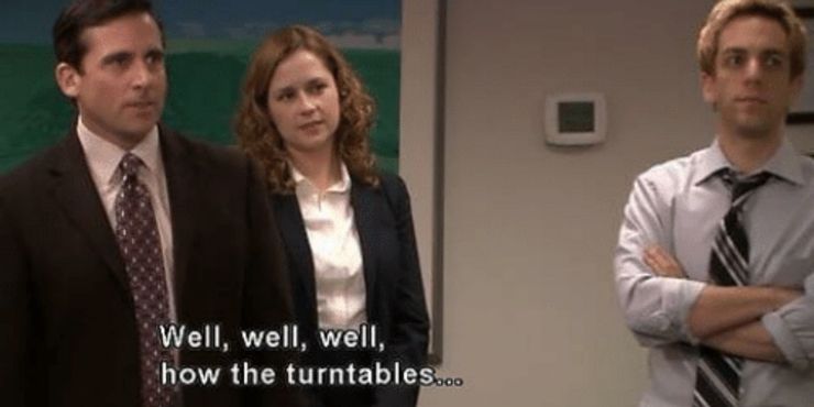 Si bien todos los personajes tienen sus errores en las palabras o frases comunes, nadie tiene más errores que Michael Scott. Cuando él, Pam y Ryan se reunieron con David Wallace sobre el futuro de The Michael Scott Company, Michael echó un vistazo a la oficina y dijo: “Bueno, bueno, bueno, ¿cómo han cambiado los tocadiscos?” En lugar de “cómo han cambiado las tornas. . ”