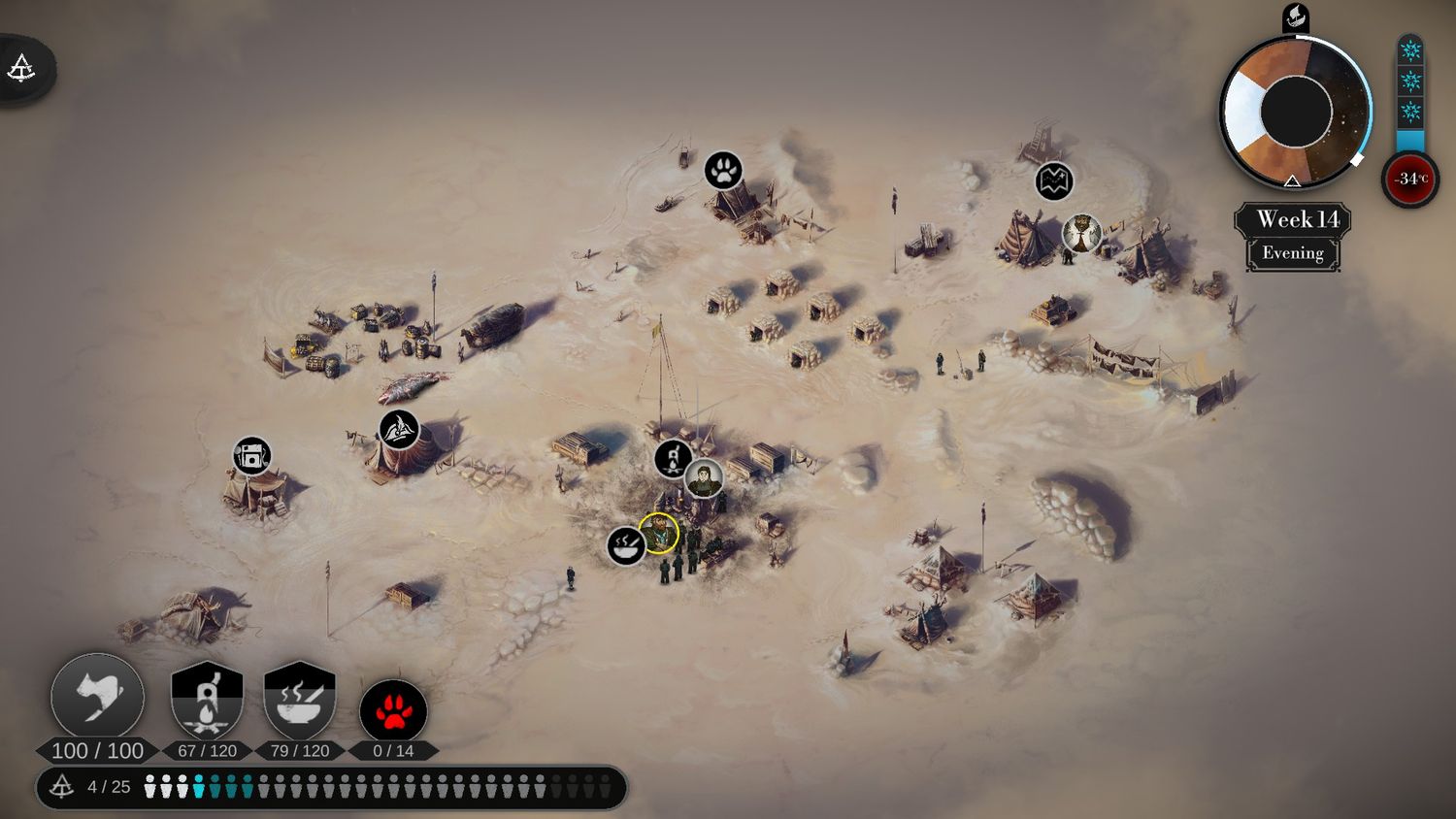 Las decisiones difíciles en el duro invierno de El pálido más allá y la encantadora obra de arte dibujada a mano La saga de la bandera a la mente, aunque este juego es en última instancia su propia bestia. Aquí, la amenaza de un fracaso total está mucho más presente, con comida y calor en un suministro extremadamente limitado y un medidor de decoro que desencadenará un Game Over con la pérdida de la moral. Esta última característica es opcional, pero el juego tiene una red de seguridad independientemente, desbloqueando ciertas semanas como puntos de guardado que los jugadores pueden reiniciar en caso de falla. Las consecuencias a largo plazo de una decisión particularmente mala podrían requerir un gran retroceso, pero siempre hay un camino a seguir.