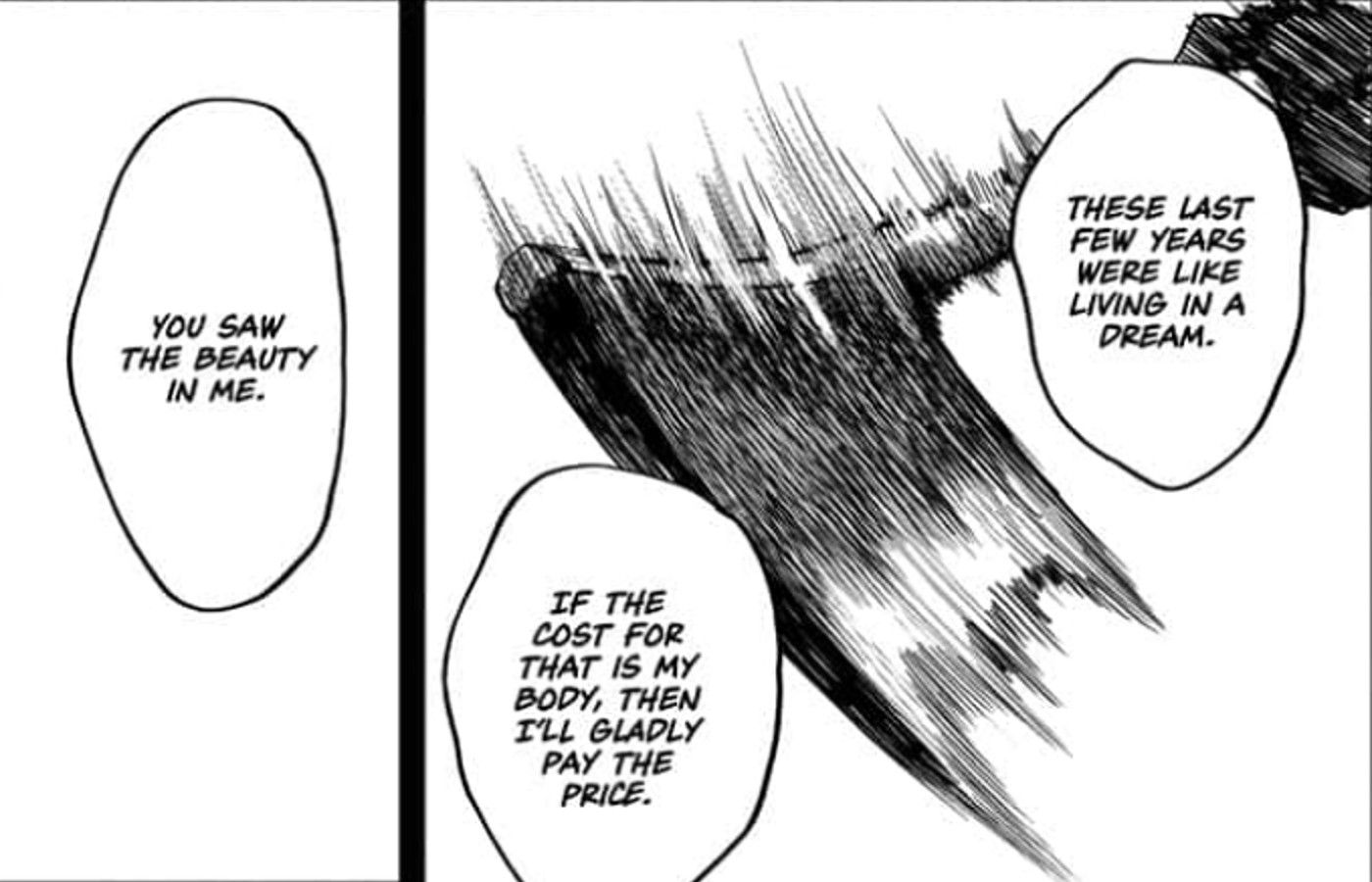 En el capítulo 15, traducido por Jan Mitsuko Cash, Ashibi y su compañero Fabricant 100 derrotan a Fabricant que ha estado secuestrando niños y cosechando sus cuerpos. Antes de morir, recuerdan a uno de los niños que criaron, que había sido rechazado debido a una marca en su rostro. Cuando un día le dijeron a esta niña que no les importaba la marca, se puso muy feliz y comenzó a acercarse increíblemente al Fabricante. Cuando llegó el día de la cosecha de sus manos, la niña las entregó con gusto, diciendo que eran un sacrificio que haría con gusto por los años de felicidad que había encontrado viviendo con el Fabricante. Esta es una actitud increíblemente retorcida que El prometido país de nunca jamás nunca explorado.