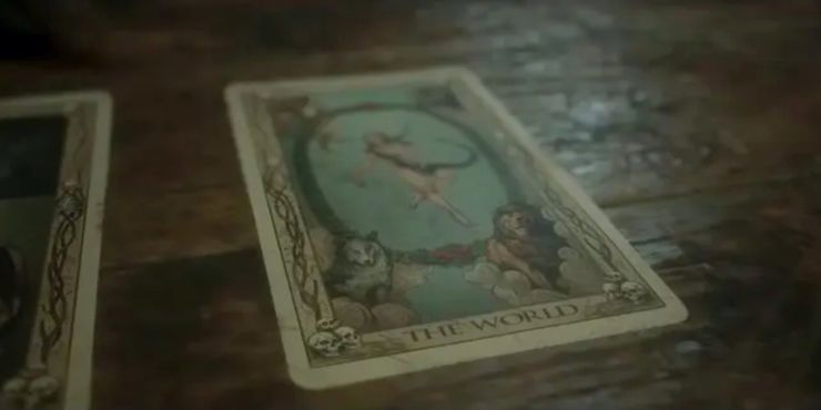 - El tonto (Prólogo): Mientras Laura mira alrededor en el bosque, trepará una pequeña repisa y el ángulo de la cámara cambiará. La carta del Tarot se puede ver tan pronto como se mueve la cámara.