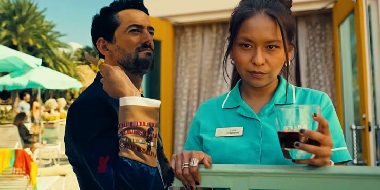Luis Gerardo Méndez en Baltasar – Méndez stars as Oceana Vista’s concierge, Baltasar. Méndez appeared in various films and TV shows, including Club de Cuervos y Bayoneta. Más recientemente, Méndez interpretó a Víctor Tapia en Narcos: México y Pedro Salinas en los enviados.