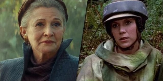 Lucasfilm dejó bastante claro que el desempeño de Carrie Fisher en Star Wars: The Rise of Skywalker se crearía utilizando imágenes no vistas de Star Wars: El despertar de la fuerza, aunque el coguionista Chris Terrio confirmó recientemente que una escena de flashback con una joven Leia Organa fue creada con la ayuda de diarios de Star Wars: El Regreso del Jedi. Dado el fallecimiento de la actriz en 2016, los fanáticos asumieron que Star Wars: The Last Jedi sería su última aparición en la serie, con el director J.J. Abrams, en cambio, utiliza las imágenes no vistas y algunas técnicas de efectos visuales para insertarla en escenas orgánicamente, utilizando otros personajes para recontextualizar su diálogo para que se ajuste a la historia.