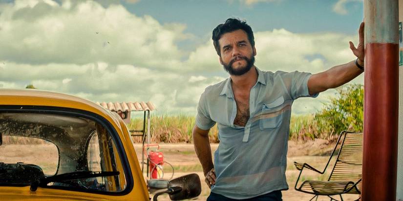 En una estación de servicio en medio de la zona rural de Brasil, Marcelo (Wagner Moura) se detiene para llenar el tanque de su escarabajo amarillo antes de que vea un cuerpo cubierto de cartón en el medio del lote. Ha estado allí durante casi una semana y el asistente de estacionamiento ha estado ahuyentando perros callejeros ansiosos por masticar las extremidades en descomposición mientras espera a que la policía responda a su llamada.