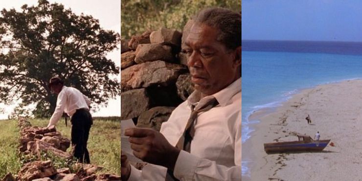 Después de la fuga de Andy, Red finalmente es liberada también. Honra una petición que Andy le hizo hace mucho tiempo, de ir a un campo de heno de Nueva Inglaterra, encontrar una pared larga con un árbol al final, donde hay una roca negra que debería ser desenterrada. Red encuentra una carta y un sobre lleno de dinero que usa para viajar a Texas y luego cruzar la frontera a México, donde los dos amigos se reencuentran.